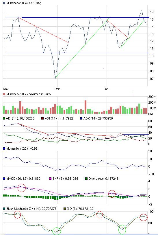 Münchner Rück wurde am Mittwoch auf Grund charttechnischer Signale vorübergehend verkauft. Es wurde ein Verlust von 52,50 € realisiert. Der Zeitpunkt für einen Wiedereinstieg ist noch nicht (wieder)reif.