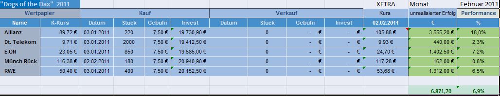Immerhin - seit Jahresanfang ist die Performance 6,1%. Man darf gespannt sein, wie sich dieses Depot im Jahr 2011 entwickelt.