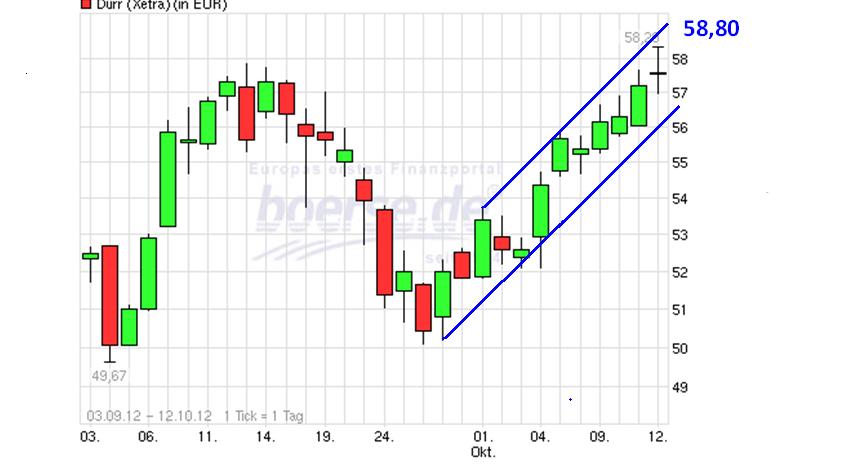 Steigt Dürr dynamisch über 58.3 -58, 5 € an und fällt nicht mehr unter 56,5€ dann kann es weiter steigen bis auf 65-67 und ich lege ordentlich nach.