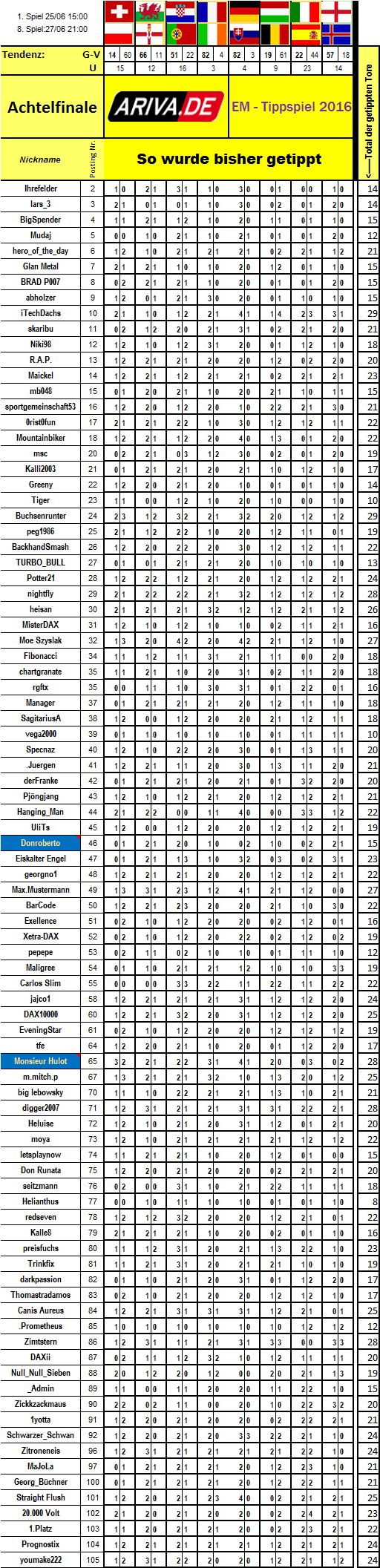 Die beiden letzten Tipps, von Locky und Asterix18 tauchen zwar in der nachfolgenden Grafik auf, ich kann jedoch versichern, dass ihre Tipps in die Wertungen aufgenommen wurden.