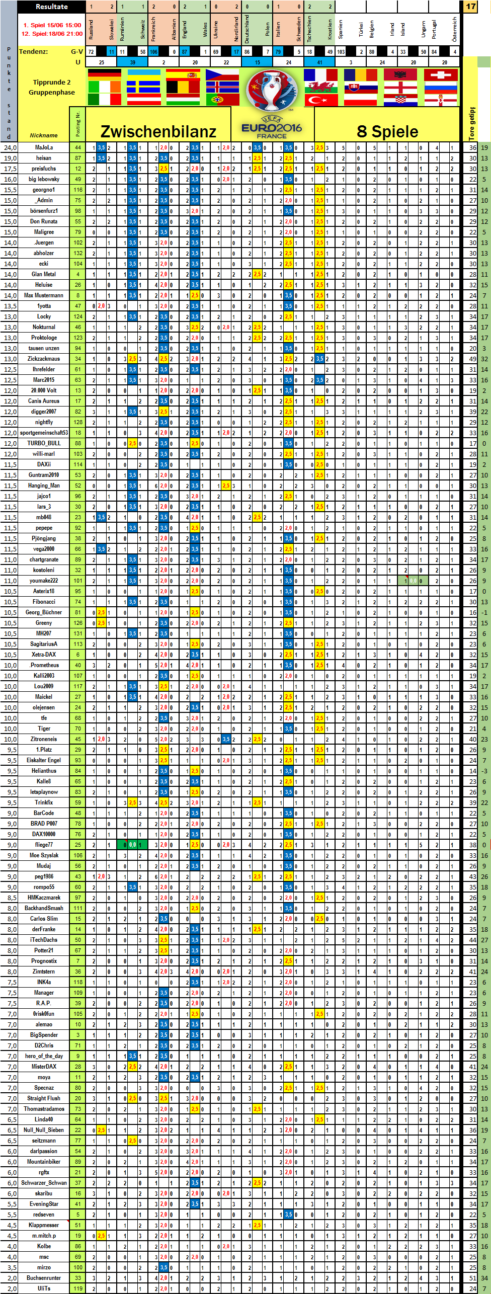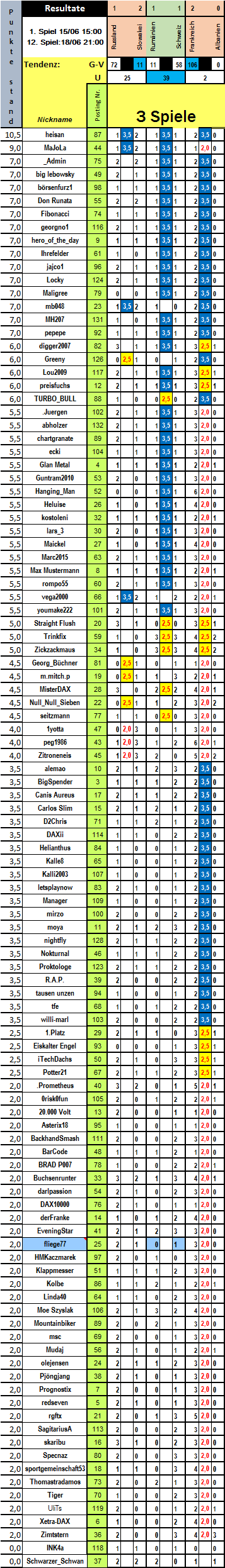 Tipprunde 2 (1. Spiel 15.06. 15:00 Uhr - letztes Spiel 18.06 21:00 Uhr)