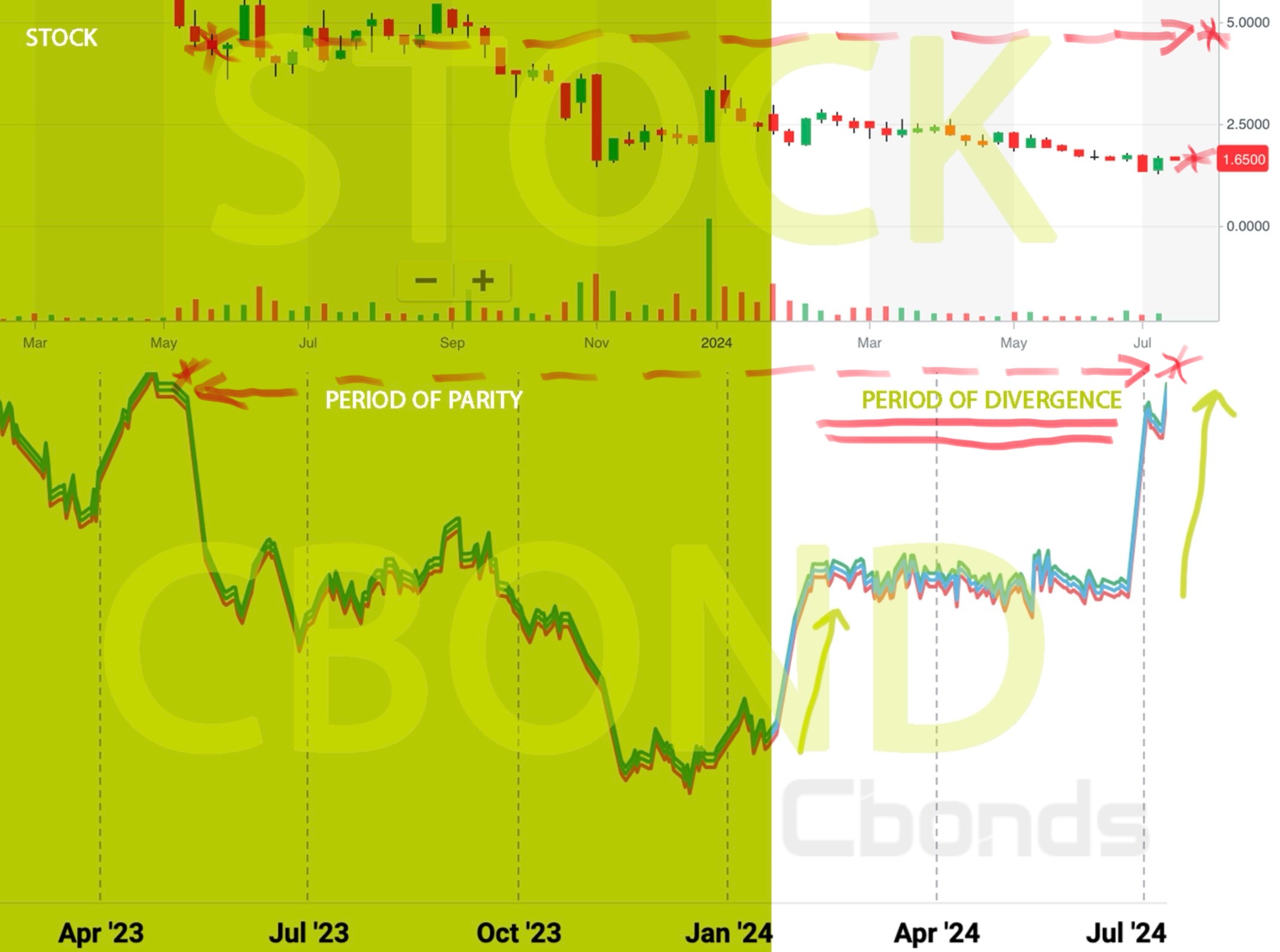 Divergenz zwischen Anleihe und Aktienkurs