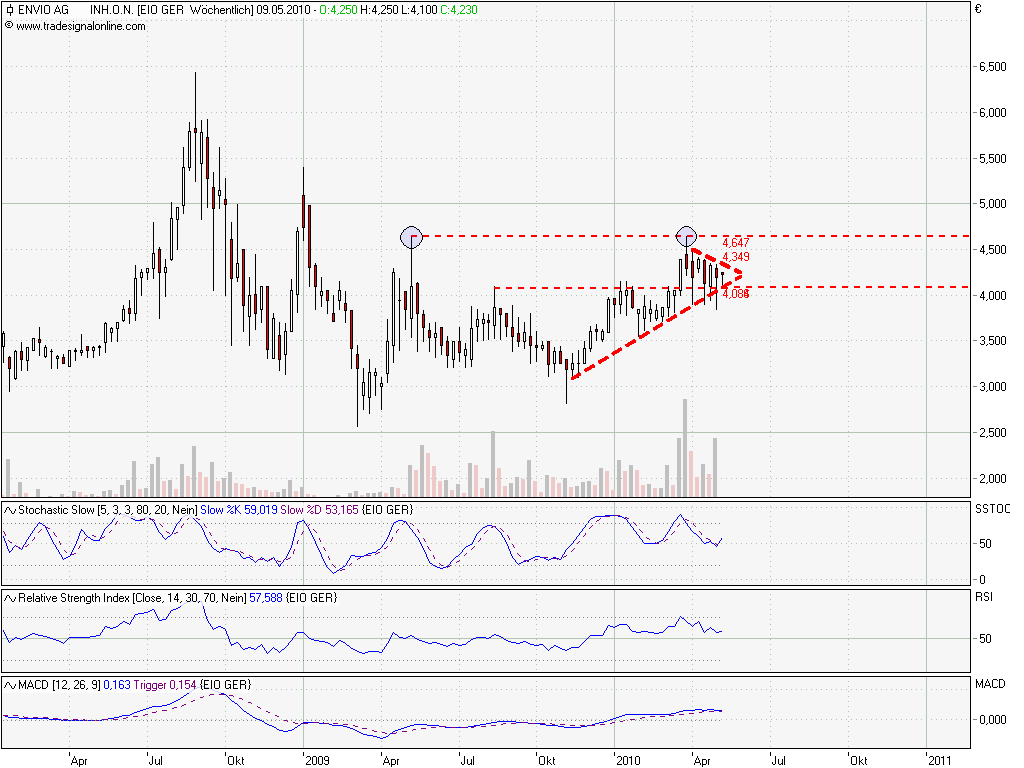 Neben einer Anlage in Dortmund und Korea plane der Vorstand ein drittes Werk zu bauen. Baubeginn könnte Anfang 2011 sein. Möglich sei ein Werk in Russland oder Kasachstan. Insgesamt sei es das Ziel mittelfristig über fünf Anlagen zu verfügen. Eine Anlage koste ca. vier Mio. Euro und sei aus dem eigenen Cashflow finanzierbar. Auf Sicht von zwei bis drei Jahren strebe Envio einen Umsatz von über 50 Mio. Euro bei einer EBIT-Marge von ca. 30 Prozent. Operativ würden dann 15 Mio. Euro in der Firmenkasse klingeln.