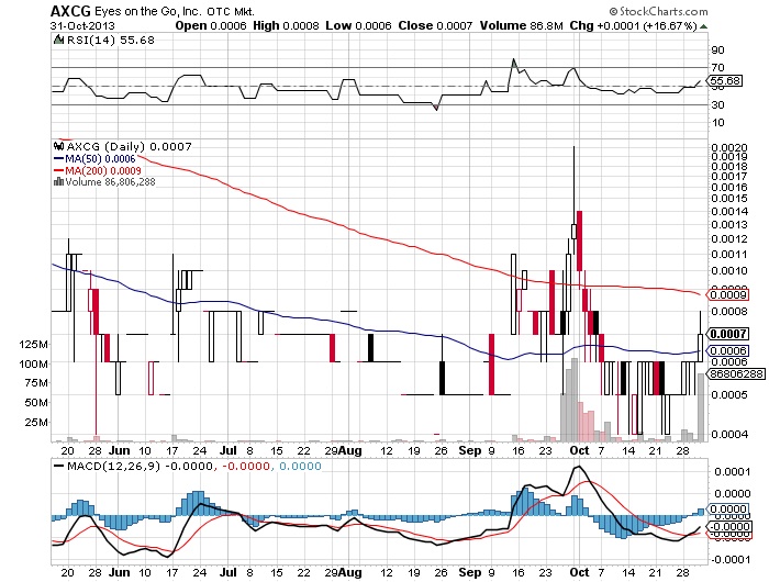 NEW YORK, NY--(Marketwired - Nov 5, 2013) - Eyes on the Go, Inc. (OTCQB: AXCG) ("Eyes"), a virtual broadcasting company supplying live and recorded content from top New York City nightlife performance venues, announced that Eyes has entered into a number of 'Ad Network' agreements which have contributed to the Company's consistently growing income -- projecting a revenue increase of nearly 1000% over the next 60 days.