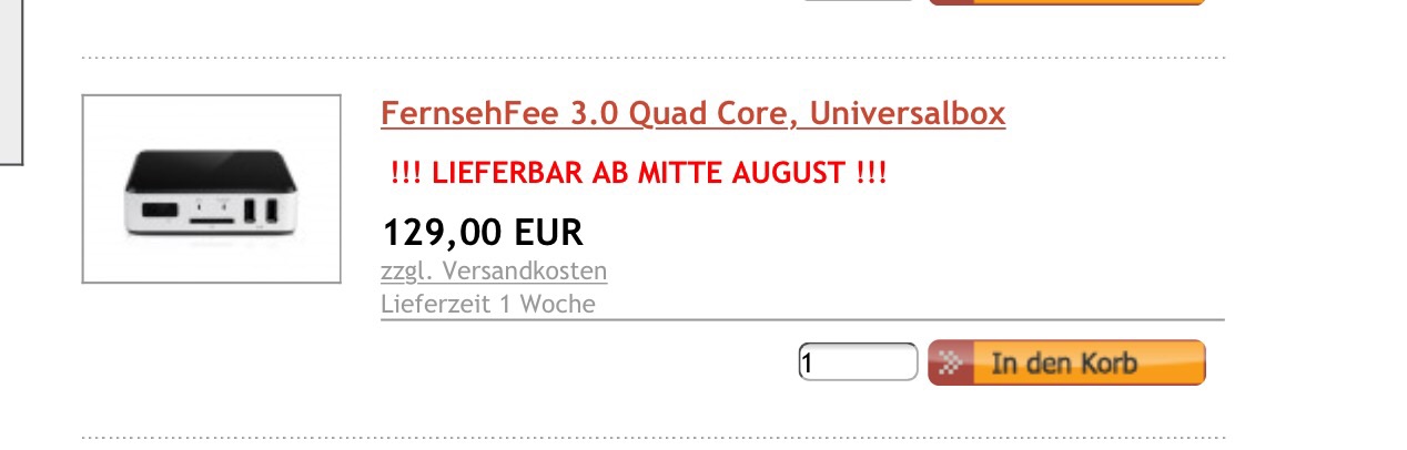Und du kannst es vorbestellen. Und wenn die da 500 Stück stehen haben, war das vielleicht die erste Palette von vielen die da noch folgen sollen, meiner Meinung nach.