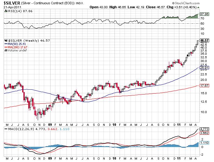 2. Nahost-Kriege. In den siebziger Jahren kam es - im Gefolge von Nahostkriegen mit gewaltigen Ölpreisschocks - zu den allergrößten Inflationsschüben und Silberpreis-Kursexplosionen. Die derzeitigen, dramatischen Zuspitzungen und Unruhen im Nahen Osten sind kaum als Zufallsentwicklungen zu werten. Da sind höchstwahrscheinlich Mächte involviert, welche sich - mit heuchlerischen Vorwänden - die Ölvorräte im ganzen Nahe Osten sichern wollen. Es sieht jetzt sehr stark danach aus, dass militärische Interventionen in etlichen arabischen Ländern unmittelbar bevorstehen könnten. Begleiterscheinung davon wären dabei natürlich sehr viel eher weitere Kursexplosionen beim Rohöl und bei den Silber- und Goldpreisen!