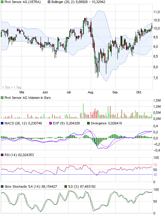Die Aktie von First Sensor notiert aktuell mit einem Minus von 0,22 Prozent bei 10,22 Euro. (24.10.2011/ac/n/nw)