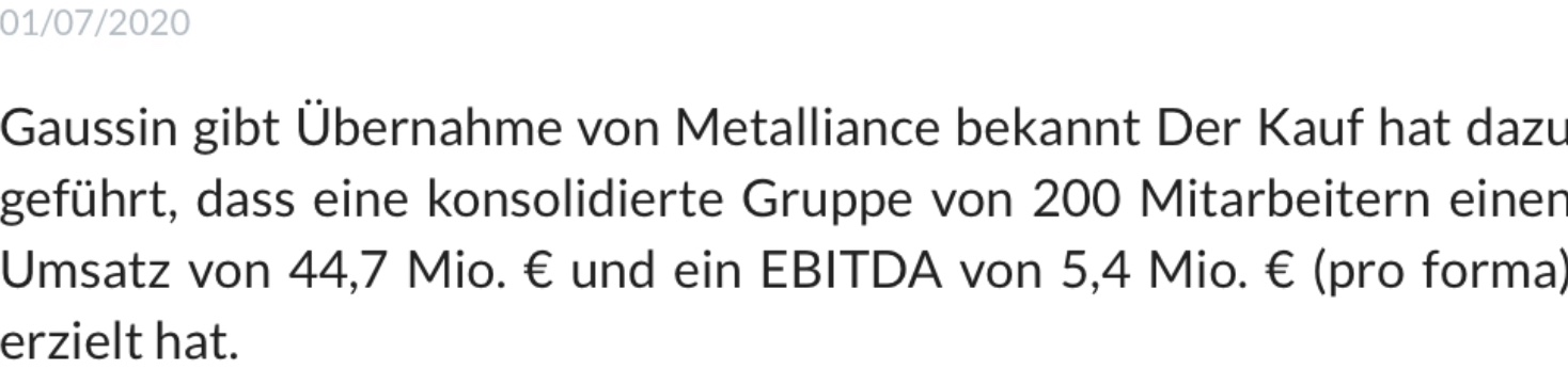 In 2020 kam ja noch gar nichts. Wobei durch  die Übernahme von Metallianc­e plus X eigene Einnahmen,­ schon gut aussehen würden. Mal abwarten wann etwas vermeldet wird.