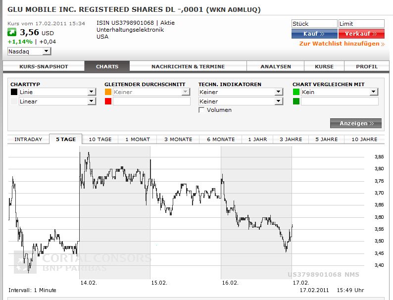 Die Aktie hat an die 4 $ angeschlagen. Hui, was für ein Tag an der Nasdaq.