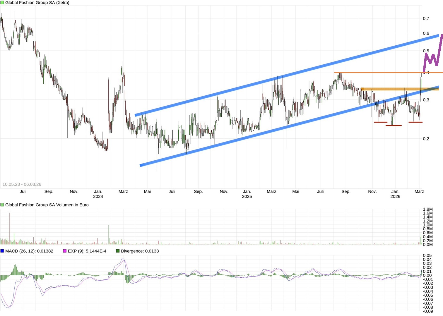Nach dem heutigen Auftakt in der Tag sieht es ja auch technisch gut aus. Nach der HV Ende Mai dann obere Trendlinie bei 60 Cents gut machbar. jahresende dann hoffentlich noch ein stückchen höher, aber abhängig von den Q2+Q3 Zahlen.