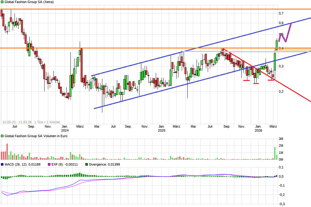 Sehe ich genauso. Wie ich schon geschrieben habe, sehe ich das eigentliche Ausgangsniveau des Kursanstiegs eher zwischen 30 und 35 Cent. Hier lag das Niveau meist im Jahr 2025 vor dem Softwarecrash Anfang 2026. Von daher hat die Aktie "nur" 50% wahren Turnaroundanstieg hingelegt.