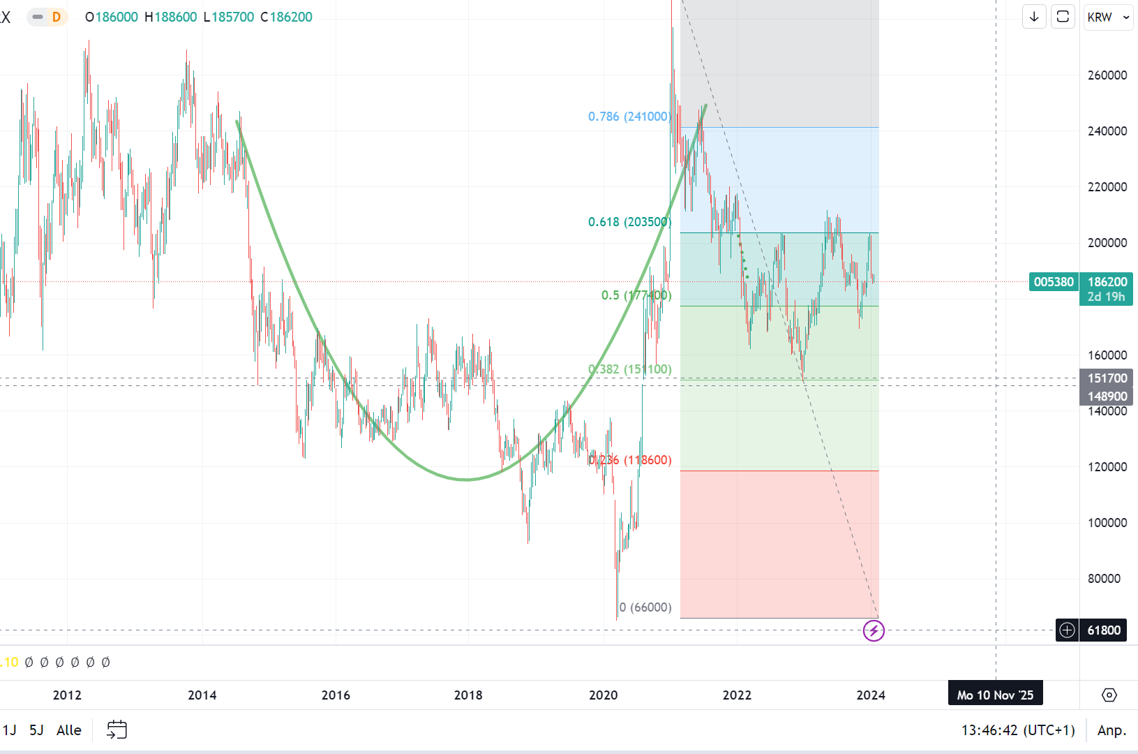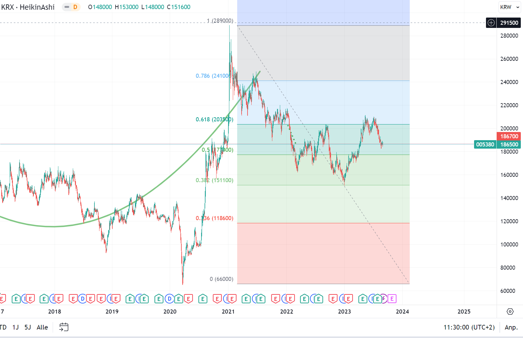 Hyundai mtr der Kurs müsste jetzt bald nachgeben.­ Ich rechne damit, dass das Unternehme­n sich zu Margendruc­k und Absatzprob­lemen äußern wird.
