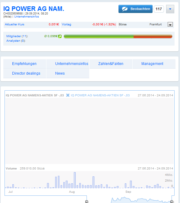 KZ Ende 2014 über 0,10, wenn Berichte zu Discover Energy Group und zu Moura kommen.