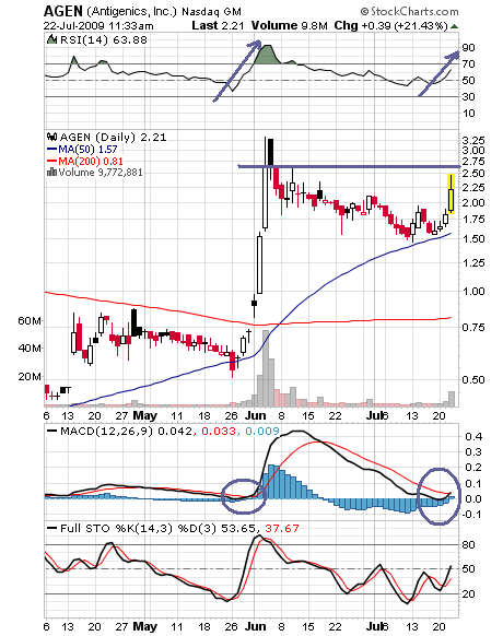 (Vermutlich haltlose) Gerüchte um eine frühere Zulassung von Oncophage haben den Kurs von Antigenics heute ordentlich nach oben bewegt. Wer die Einkaufskurse (s.o.) genutzt hat, kann sich jetzt schon über +30% freuen.