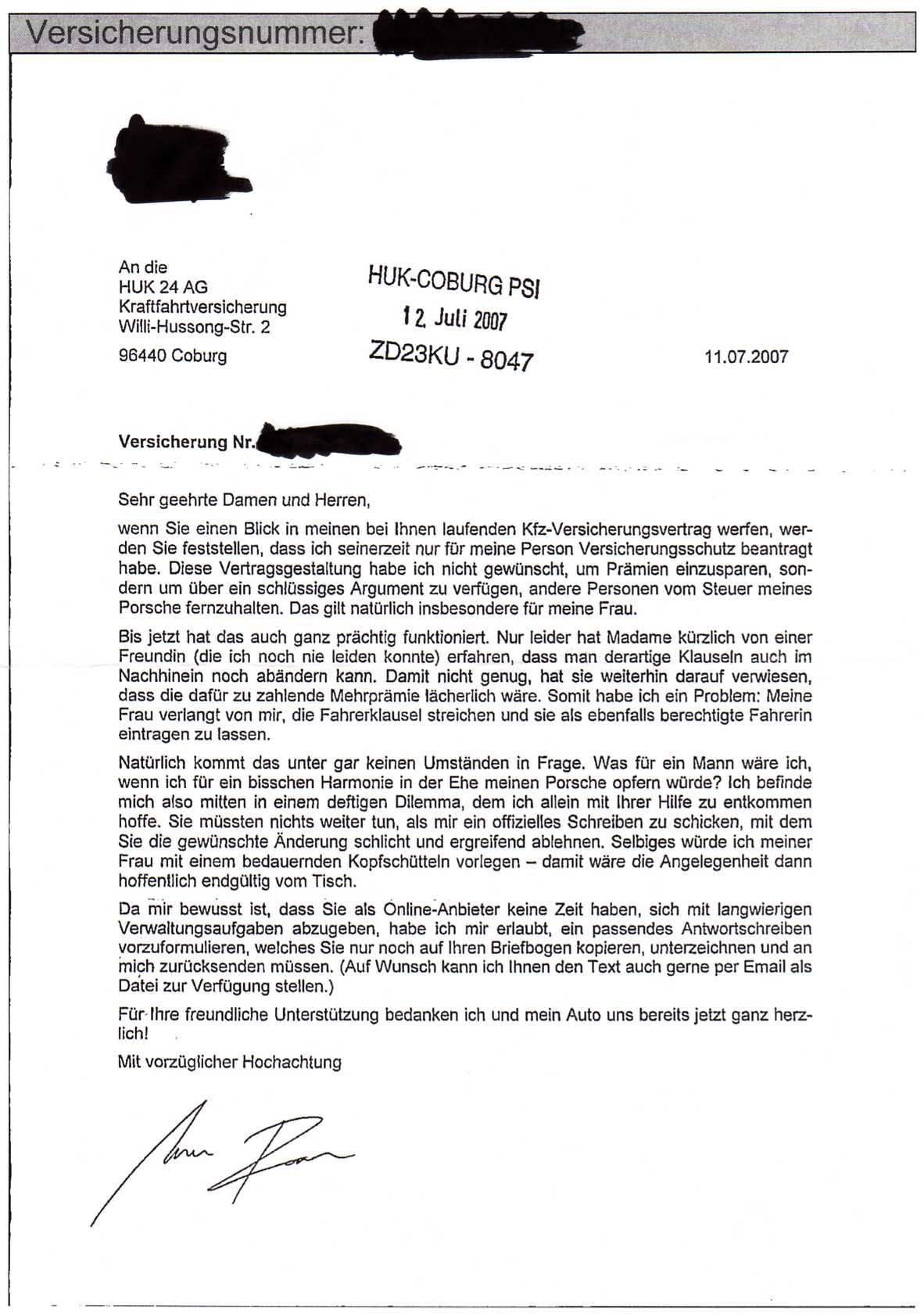 KFZ-Versicherungskorrespondenz Ariva-Style Warum musste ich beim Lesen dieser Mail heute an Ariva denken? Muss mit der aus den Postings im Talk hervorgehe­nden Genderkomp­etenz zusammenhä­ngen...