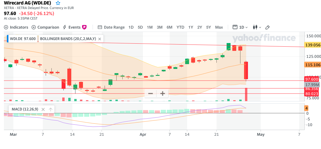 4. Montag, den 27.04.2020. Die Enttäuschung des Jahres, und das Ende April. An diesem Tag wurde uns die Veröffentlichung des KPMG-Testats nicht zum ersten Mal versprochen. Eines der größten Veräppelungen in der Aktionärsgeschichte eines DAX-Unternehmens. Auch ich habe bis 24 Uhr ausgeharrt, ohne dass Wirecard und Markus Braun irgendetwas verlautbart haben. Dieser Tag hat dazu geführt, dass Millionen von Aktien in den beiden folgenden Tagen die resignierten Besitzer gewechselt haben. An diesen Tag werden wir uns wohl alle lange Zeit erinnern!