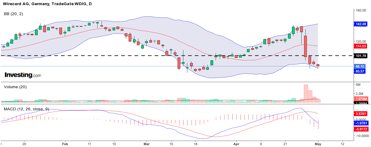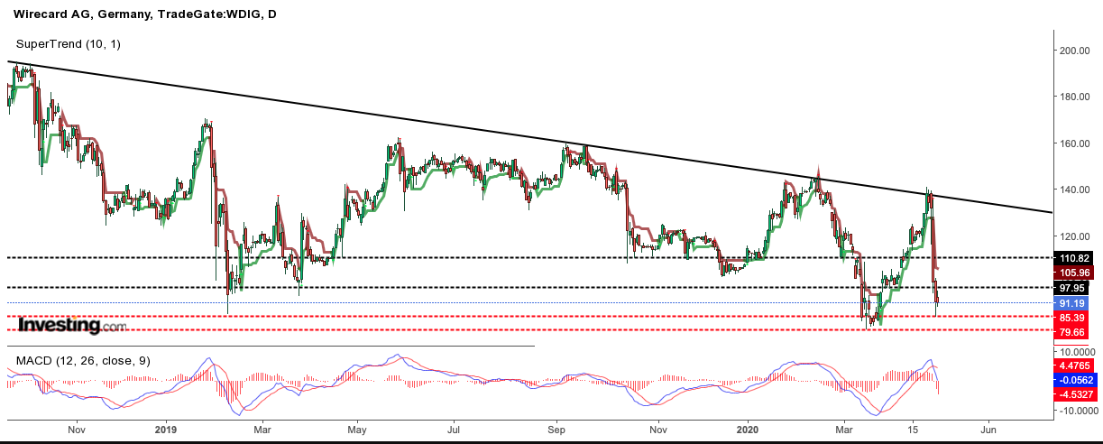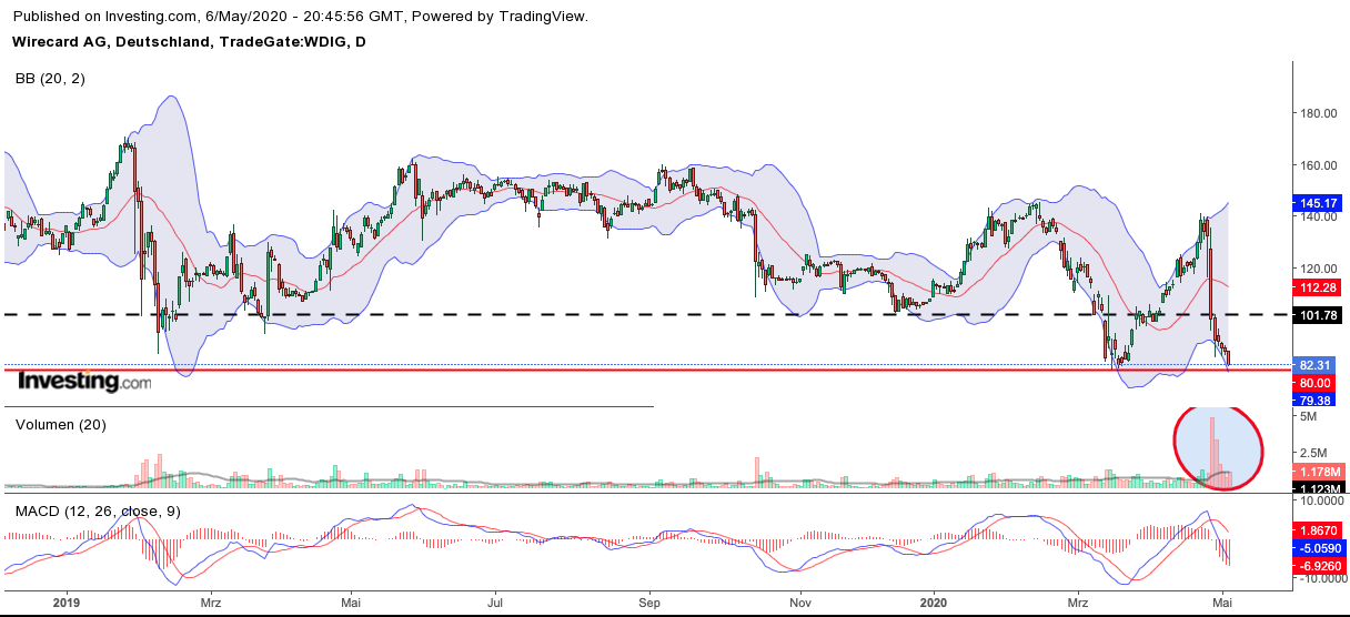Unter €85 auf Tagesschlussbasis wird's dagegen kritisch, unter €79 auf Tagesschlussbasis sehr kritisch.