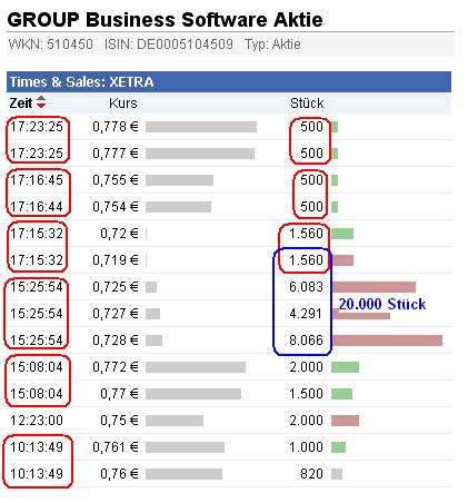 Heute in der ersten halben Stunde mit 4 Order 50.000 Stück