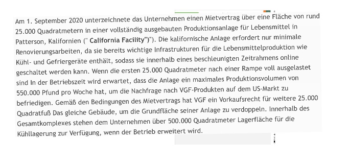möchte klarstellen, dass VGFC zwar einen Mietvertrag für die Patterson-Anlage abgeschlossen hat, diese jedoch noch nicht in Betrieb ist