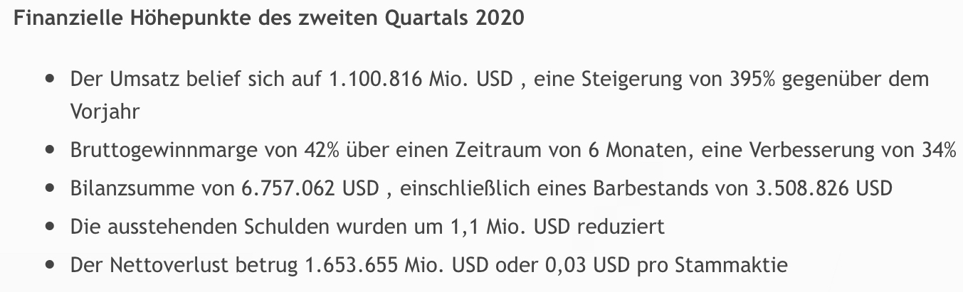 in der Pressemitteilung des Unternehmens vom 25. August 2020 veröffentlicht). Seit er börsennotiert ist