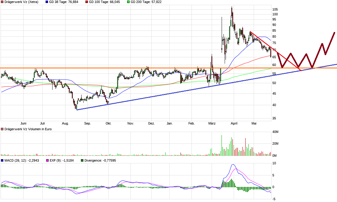 Ich bin auch überzeugt, dass Dräger viele Aufträge hat, aber wenn so weiter geht, dann sind wir bei 30 oder 40 €.