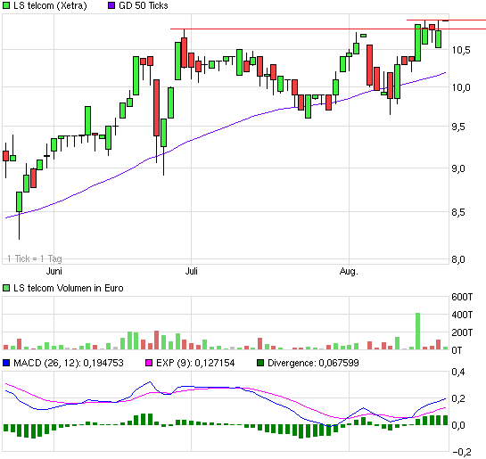 Aber wenn der endgültig überwunden wird, sollte es die nächste Stufe nach oben geben. Ich sag mal 11,7-12,0 € wäre ein erstes gutes Kursziel bis Oktober. Über den weiteren Kursverlauf werden dann wohl die Geschäftszahlen im November/Dezember entscheiden, inklusive Ausblick aufs neue Geschäftsjahr.