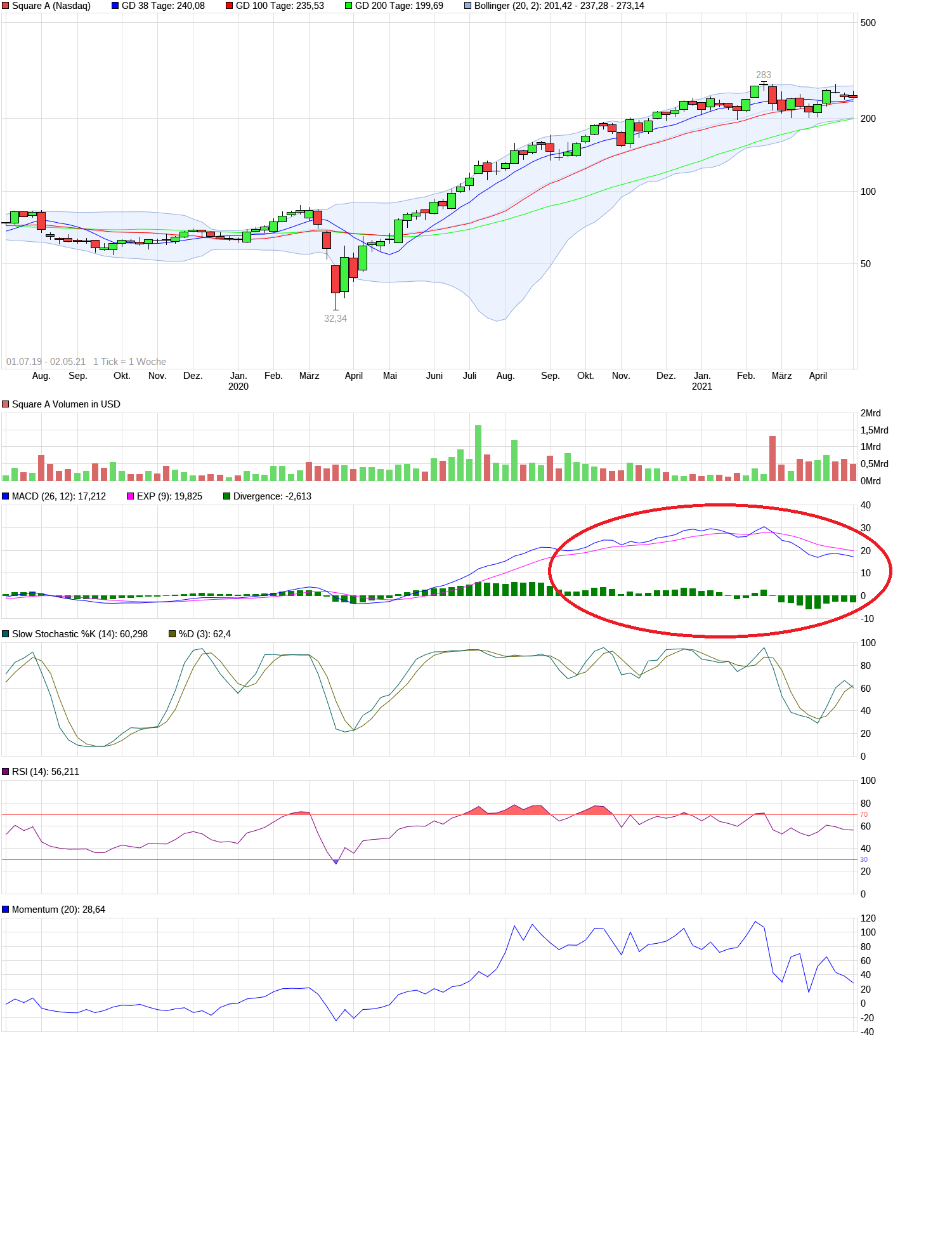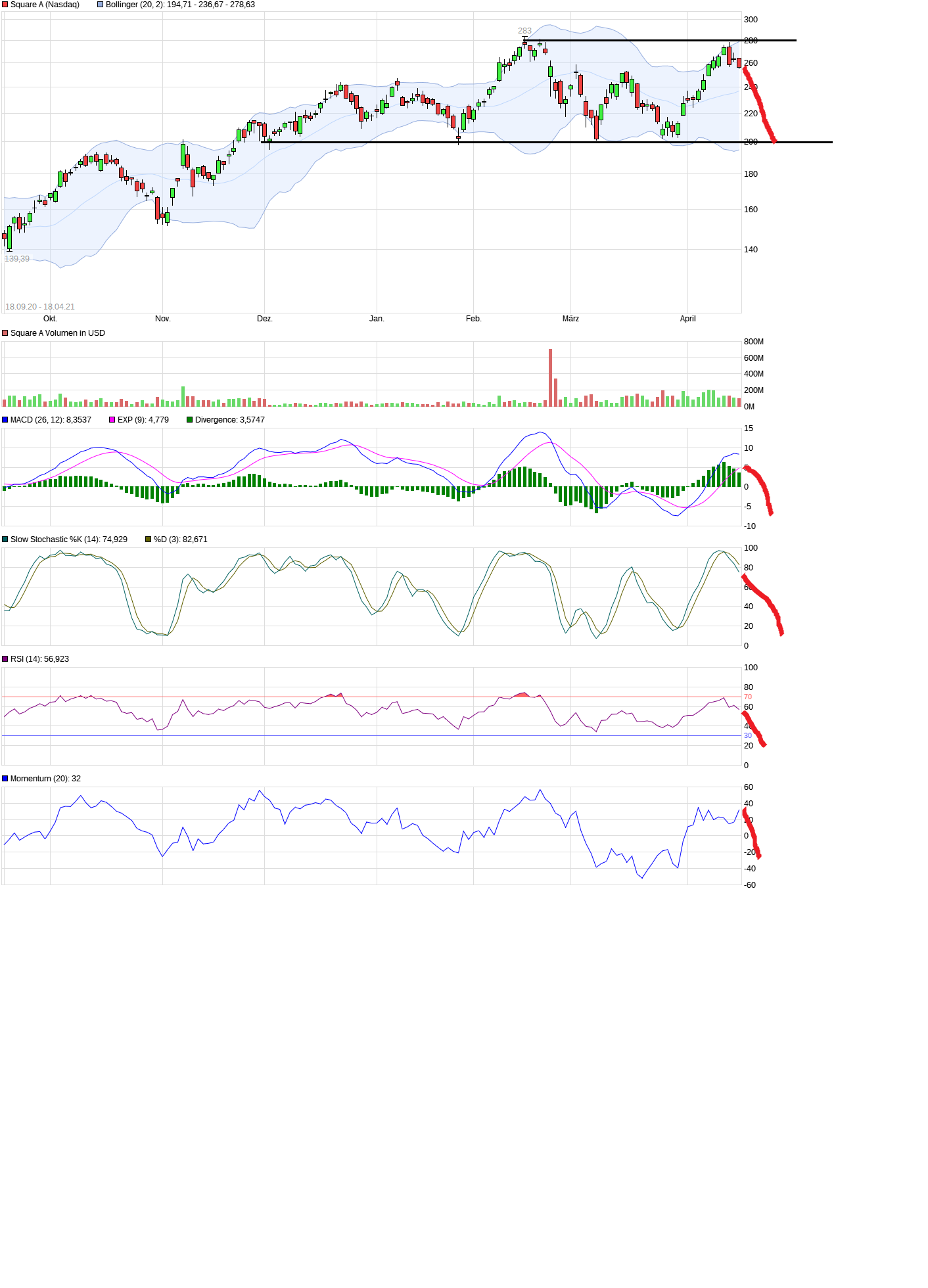 Durchaus mögliches Szenario. Gibt aber auch Argumente fürn ATH/breakout. Zahlen kommen am Anfang Mai und es könnte durchaus ein gutes Q gewesen sein. EPS est. der Wallst liegt bei $0,17 , m.M relativ moderate Hürde. USA im re-opening, gibt paar Grafiken auf Twitter die aufzeigen, dass die stimis in der jüngeren Altergruppe nicht undbedingt mehrheitlich in die Börse geflossen sind, sondern eher in den Konsum (goods, travel, food war vor invest und savings) Cash app ist weit verbreitet in der Altergruppe. Vielleicht sind noch paar Robinhooder nach dem S..storm zu Square gewechselt. etc. Zusammengefasst ich erwarte gute Zahlen.