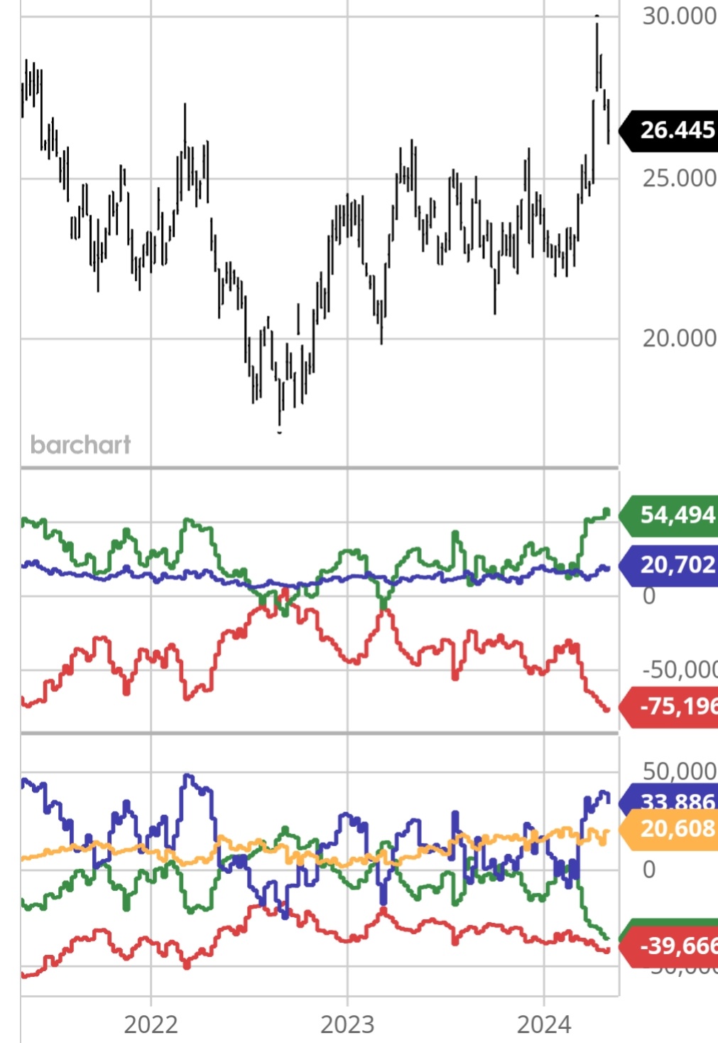 Die Minen (commercials rot) verkaufen auf Kontrakt als gäbs kein morgen. War schon meisstens so dass ab 50k contrakte die Sache wackelig wird und man am besteb was beim Kirchturm dankend ans Kreuz hängt.