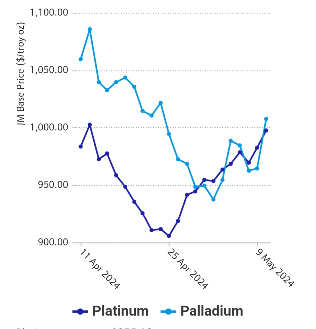Pt hat die 1000$ schon geknackt, Pd knapp dahinter.