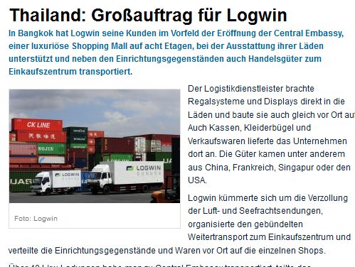 Thailand: Großauftrag für Logwin