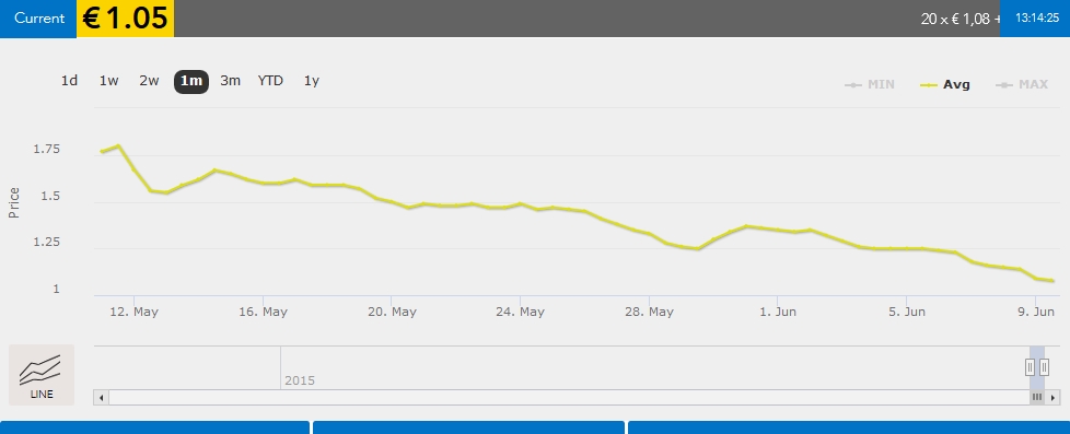 Heute, knapp 1 Monat nach dem "NO LIMITS" Anlass steht der Kurs bei 1.05 mit einem stetig nach unten gerichtetem Trend.