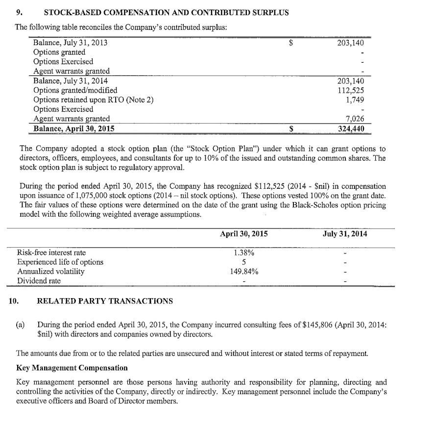 Other details of the private placement were announced in the company's news release of July 6, 2015.