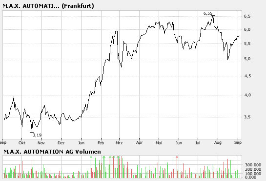 Detmold (aktiencheck.de AG) - Die Experten vom "Frankfurter Börsenbrief" empfehlen die Aktie von M.A.X. Automation (ISIN DE0006580905/ WKN 658090) per Abstauberlimit bei 5,10 EUR zu kaufen.