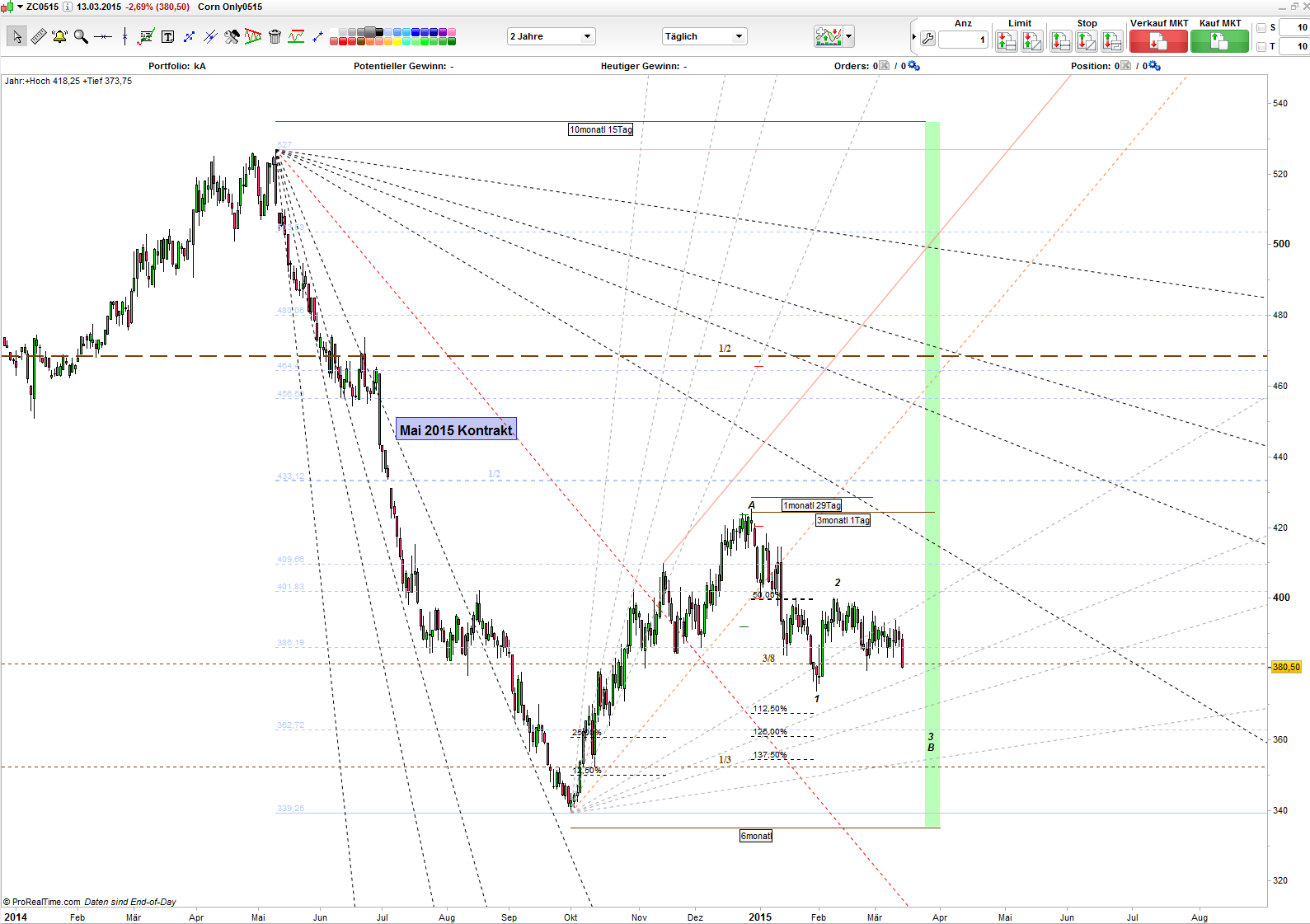 Vor diesem Hintergrund sehe ich plausible Preisbildungen zwischen dem aktuellen Tief und 440 auf der Oberseite bis zum Ende der diesjährigen Ernteperiode.