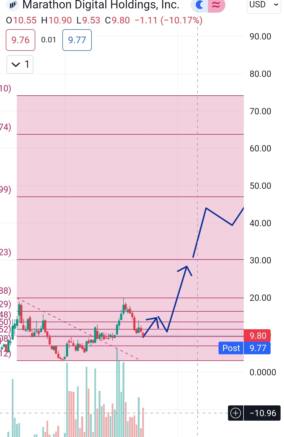 Also im großen und ganzen macht Mara gut arbeit. Der Kurs ist nunmal sehr stark BTC anhängig und genau das könnte in kürze die Würze bringen. Ich denke das in den nächsten Tagen entgegen gesetzt der Expertenmeinungen der Btc einfach langsam Richting 30 tsd steigt. Da ist die MoB. Geht et signifikang drüber könnte! es einen Squeeze out geben und den Kursen pushen.. also ist eine Möglichkeit die ich in Erwägung ziehe.. Es gibt keinen nachhaltigen Grund warum der BTC jetzt in sich zusammenbrechen sollte. Nur meiner Meinung werden die unsichere hinausgeschüttelt. Genau wir bei Mara. Mara kann im nächsten Q durchaus gute Zahlen bringen. Mein mittelfristiges Ziel vllt eher als man denkt sind die 28 und 46 Dollar