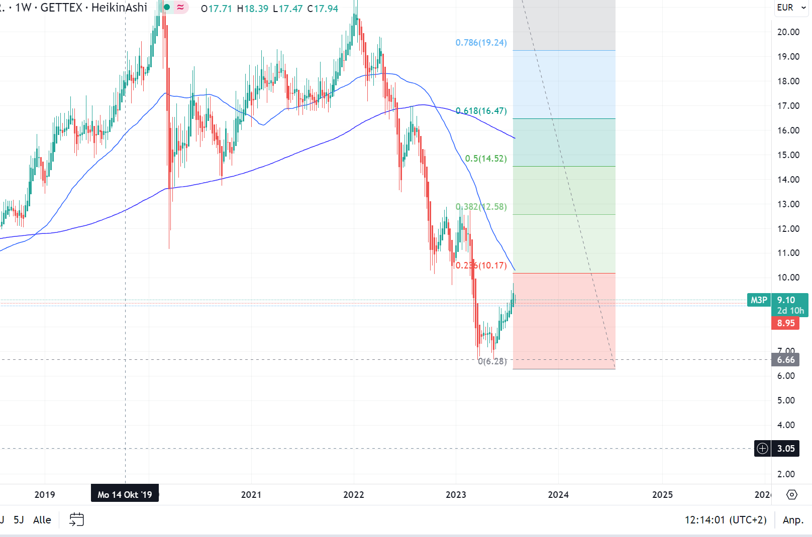 Ich habe den swing abgebrochen und werde von den Trades und Testpositionen erst in long wechseln, wenn der Kurs im unteren Retrace Signale bildet.