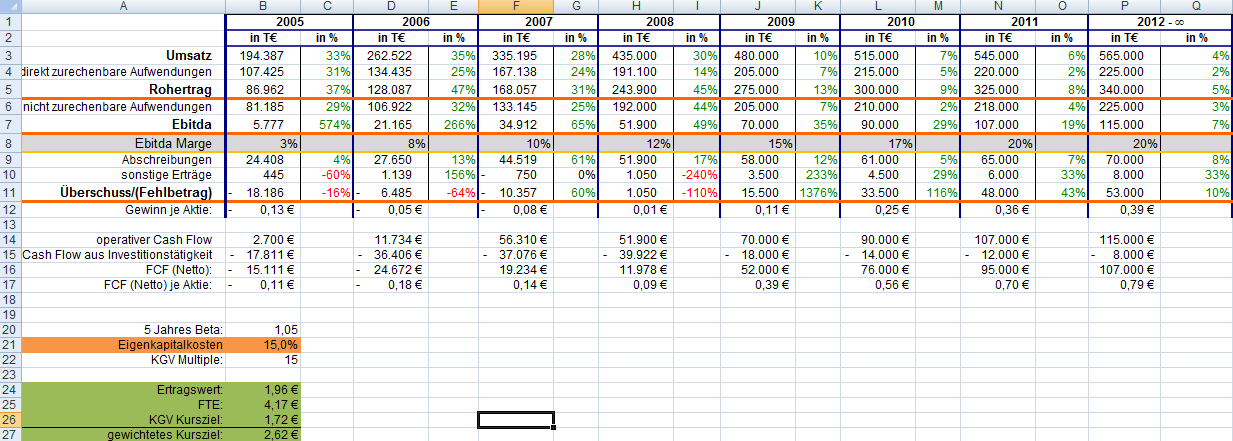 Ich nehme man an, dass die meisten langfristig Investierten eine ähnliche Tabelle erstellt haben. Daraus sind Risiken und Chancen abzuleiten und man kann u.U. auch rechtzeitig den Absprung schaffen, wenn das Schiff QSC aus dem Ruder zu laufen beginnt.