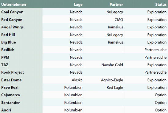 Die Explorationsarbeiten und die Kosten des neuen Antrags wurden im Rahmen einer strategischen Partnerschaft mit Agnico Eagle Mines Limited finanziert. Weitere Arbeiten werden ergeben, ob die Gebiete den Kriterien der Partnerschaft für ein geeignetes Konzessionsgebiet entsprechen (siehe Pressemitteilung vom 19. Februar 2013). .....