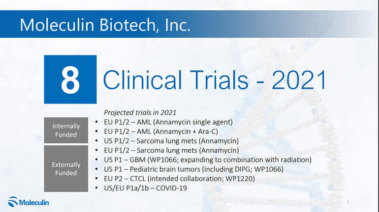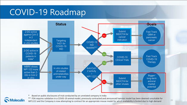 Die jetzige Pandemie rückt dieses Thema in den Vordergrund und Moleculin & Partner wollten diesen Bereich eigentlich nach Annamycin & WP1066 stärker fokussieren. Man darf nicht vergessen, dass es für so kleine forschende Unternehmen eine Budgetfrage ist, wo der Fokus gesetzt wird.