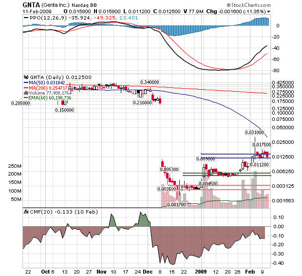 Bei Pennys allerdings klappt dies hin und wider denn Sie brauchen ja nur ein paar zu verunsichern die dann verkaufen wollen.Da der Umsatz hie rin D zu wüschen überig läßt (was sind schon ein paar Millionen Aktien) wird auch hier bei GENTA das starke bashen sowie das starke pushen funtioniren um den Kurs 1-2 Cent nach oben oder unten zu drücken.Vor allem an einem Tag nachdem NEWS kamen und die USA noch geschlossen hat.