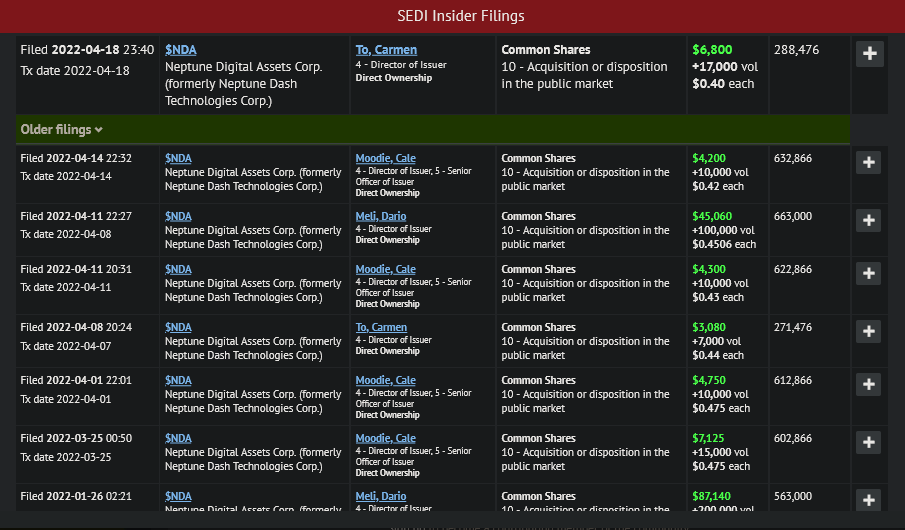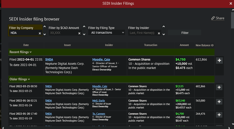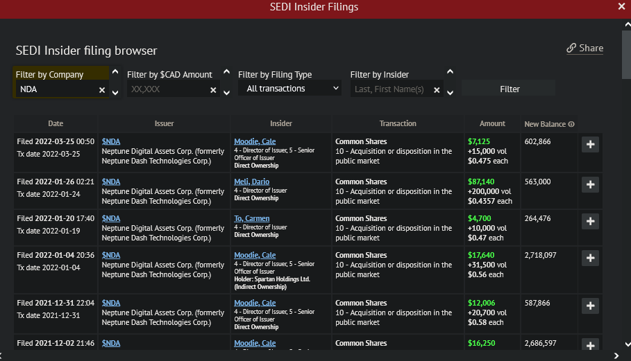 und geballt auf Sedar, Beispiel "SEDI Insider filings", s. link