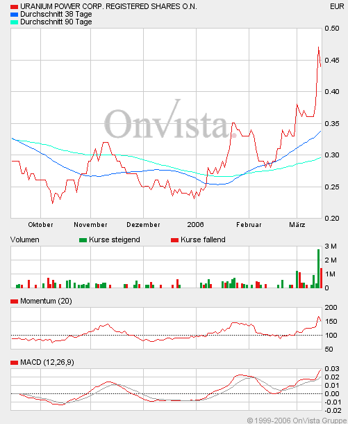 Ich werde vermutlich ein Kauflimit bei 0,37 Euro setzen. Uranium Power ist ein wahnsinnig interessanter Wert. Die Kursgewinne der letzten Tage beruhen meiner Meinung nach einzig auf den Bericht im "Aktionär". (wärs nicht gelesen hat äußerst positv, vermutlich 08erKGV von 3!!)