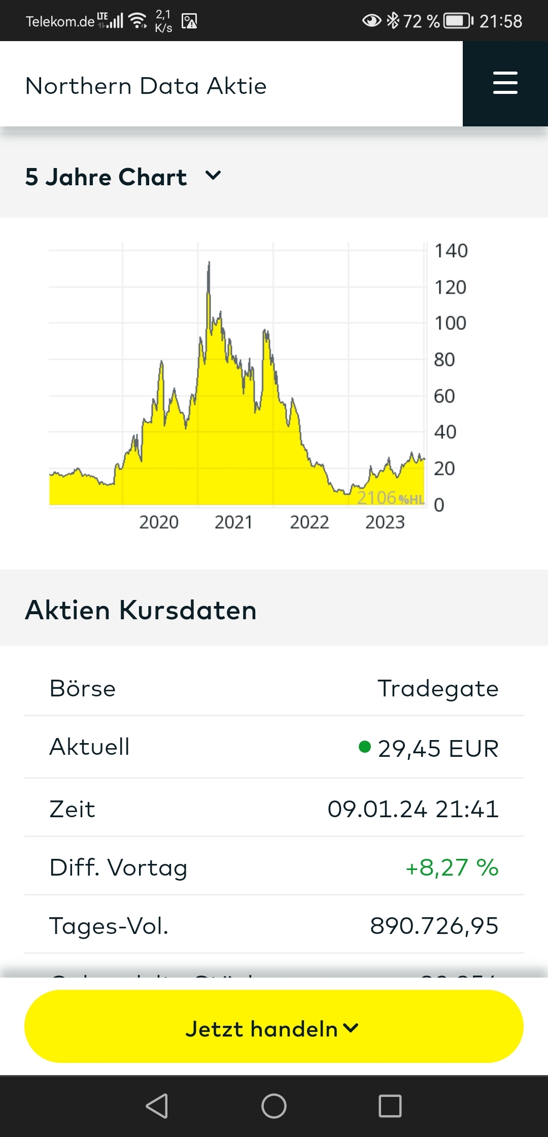 Wenn man nach Bitcoinkursen von 2020/21 gehen sollte und ein vergleich stellt, sollte der Northern Data bei mindestens 60€ heute stehen. Also kann noch viel passieren. Vielleicht hat sich die Rakete heute gezündet.