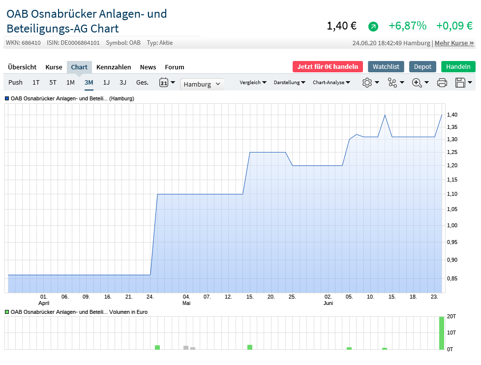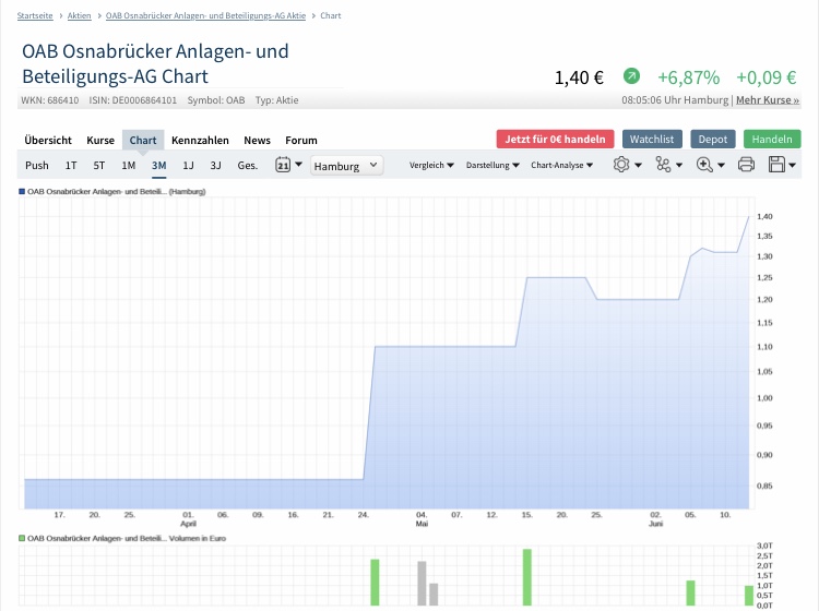 Bei OAB gibt es 500.000 Aktien. MK derzeit zwischen 550.000 und 800.000 €