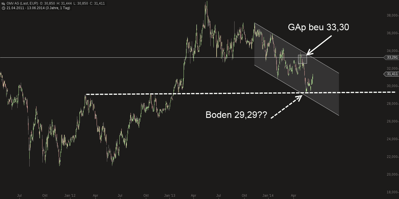 Fakt ist aber, dass der Kurs in einem Abwärtskanal befindet....Vorerst gibt es eine Erholung bis auf den Gap-Schluss bei 33,30....da entscheidet es sich, ob es ausbricht, oder wieder die 29,29 testet....