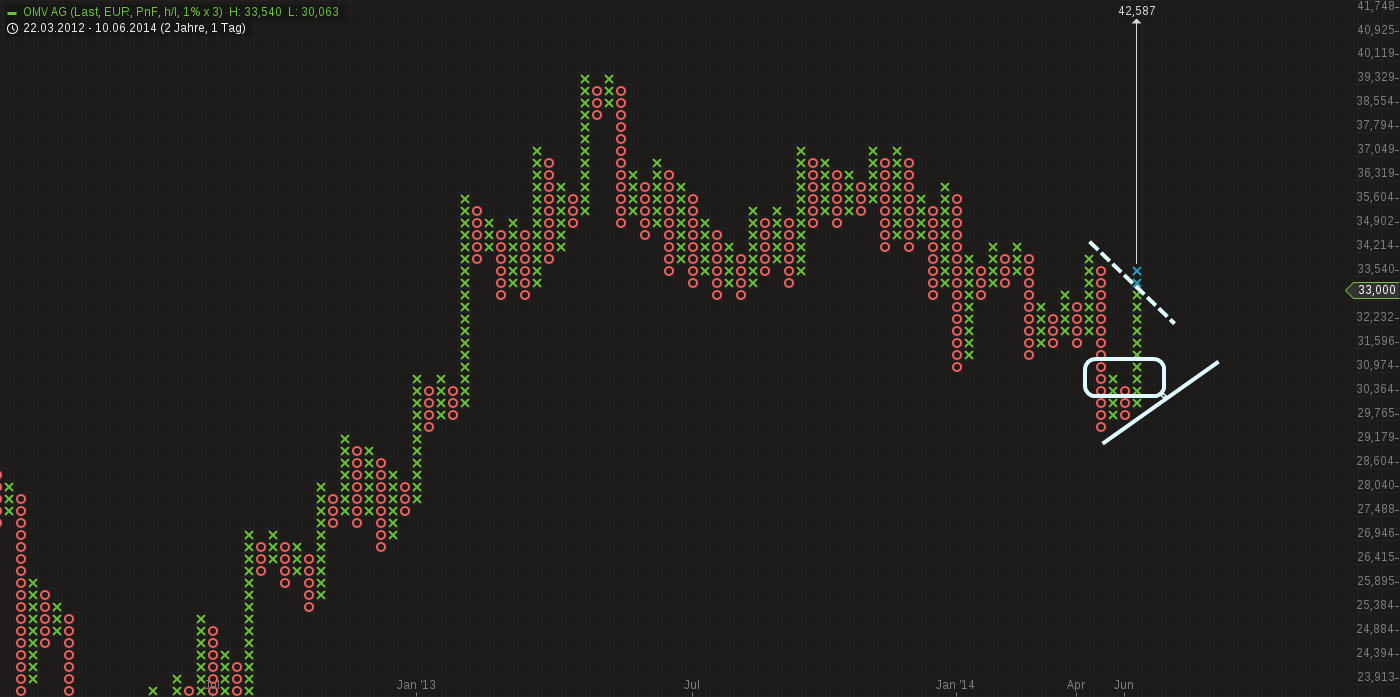 Fest steht, daß die nächsten Hürden für die OMV direkt bevor stehen - die 2. 200-Tage-Linie bei 33,75 und der Abwärtstrend knapp über 34 EUR.