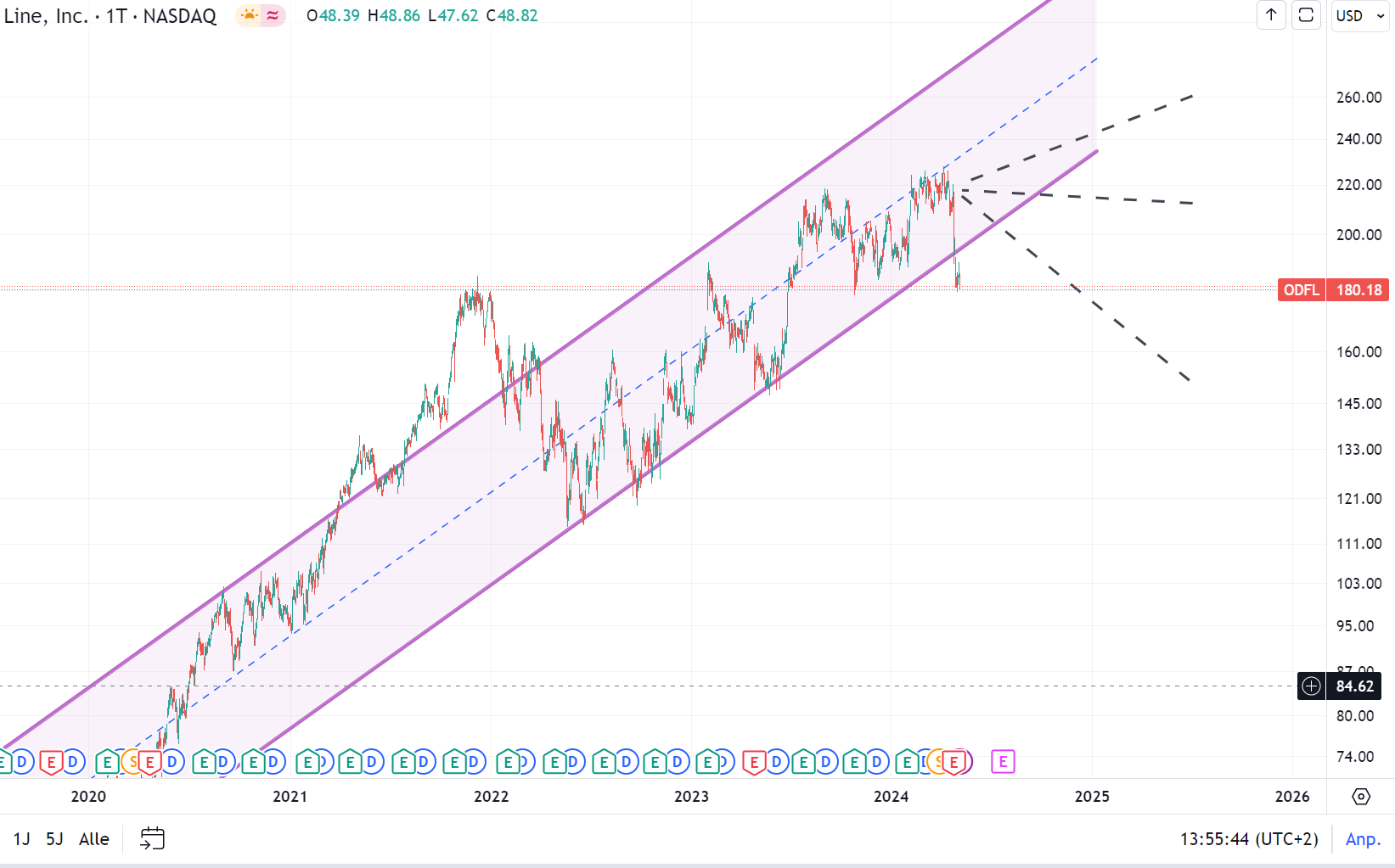 Anpassung der Kursziellinien. Die hohe Kursziele hat jetzt eine geringere Steigerung als der langfritige Trendkanal.