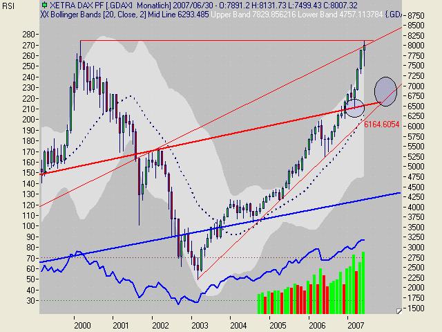 Unter fundamentalen Gesichtspunkten haben wir einen absoluten Bullenmarkt und ich sehe momentan nicht, warum wir nicht noch 10 weitere Jahre im Bullenmarkt bleiben sollten, wenn sich die emerging Markets positiv bleiben. Das sind ja auch ein paar mehr Menschen, die dieses nachhaltige Wachstum generieren und haben wollen als wir auf unserer Wohlstandsinsel Japan, Usa und Europa. Europa ist und bleibt Globalisierungsgewinner, dabei insbesondere Deutschland. Wenn die Amis nach China wollen, bleibt ihn nichts anderes übrig als bei Europa vorbeizukommen.
