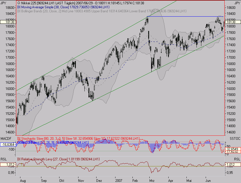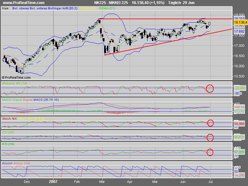 @JB, vielleicht gelingt ja im Nikkei der Durchbruch durch die waagerechte Widerstandslinie. Für mich ist es ein Auwärtstrend, der sich unter der waagerechten Linie stauen wird, um dann mit einem starken Impuls duchzubrechen. Long is on.