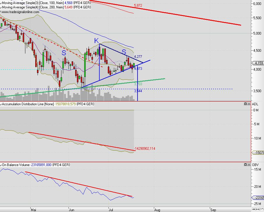 der letzten tage hält sich unserere pfleidi doch recht gut. bin echt gespannt ob`s ne "verschnaufpause" vor dem weiteren anstieg richtung 200er tageslinie oder ob`s erst mal wieder richtung süden geht. sollten die indizes nicht mehr total "abkacken" (dax so richtung 5.000 points) werden wir wohl keine 3 mehr vorm komma zu sehen bekommen. wie schon mehrfach gepostet glaube ich hier an die bodenbildung die m.m.n. so um 4 eus (+/- 5% liegen dürfte). allen noch ne schöne woche.